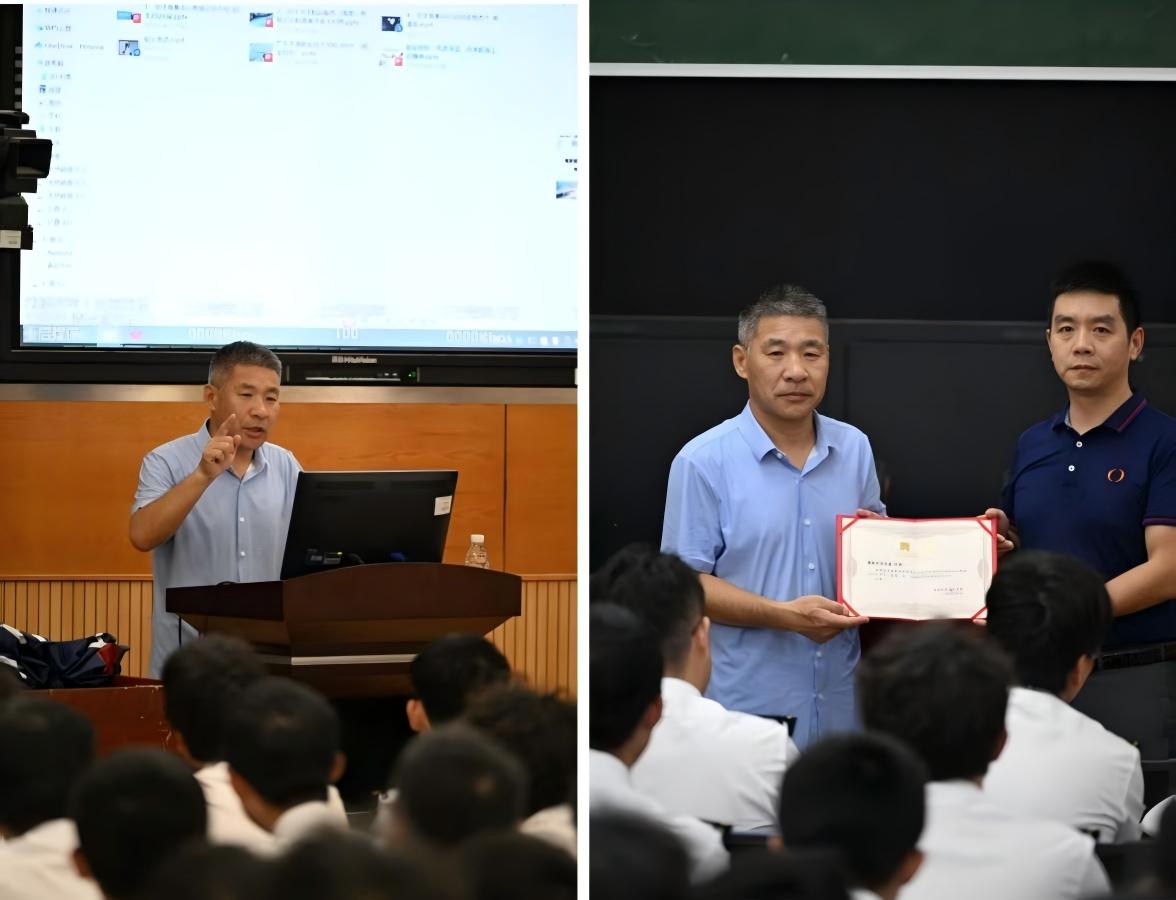 讲座开始前,王明雨首先向同学们介绍了本次讲座的意义,希望公司青年学子向申石磊学习,刻苦拼搏,向海图强,不断助力航海事业发展,同时,向申石磊颁发创新创业课校外导师聘书。