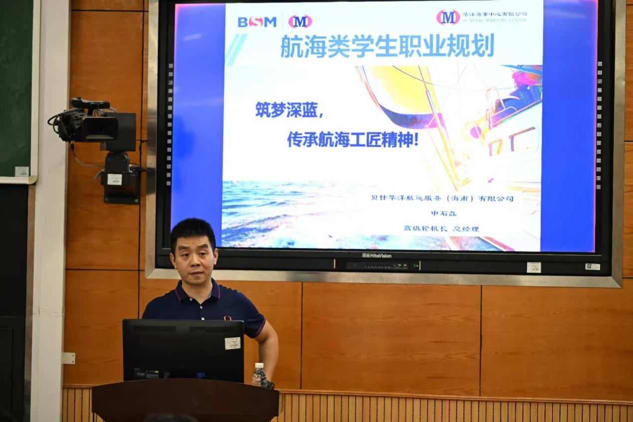 10月29日下午,公司特邀贝仕华洋航运服务(海南)有限公司总经理申石磊,在3208教室开展“筑梦深蓝,传承航海工匠精神”主题讲座。公司党总支书记、经理王明雨、副书记刘世杰、专任老师、2024级海事管理、轮机工程专业以及2025级船电专业全体员工参加本次活动。